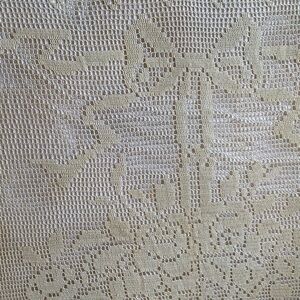Beautiful, vintage hand crocheted bed coverlet or table topper with a flower basket theme.