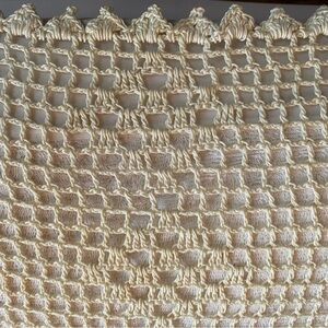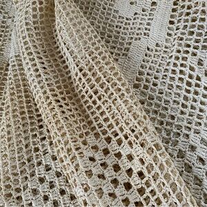 Vintage Hand Crochet Coverlet Flower Basket 57” x 83”