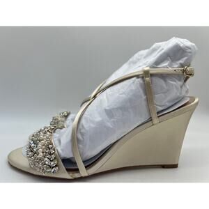 Badgley Mischka Women's Clarisa Embellished Wedge Sandal Ivory MP5243 Size 9.5