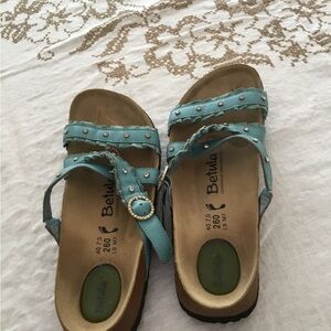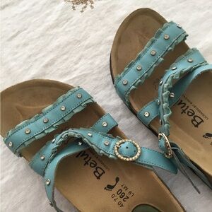 Stylish Birkenstock sandals. Blue straps with stud details. Comfortable footbed. Never worn