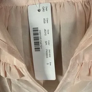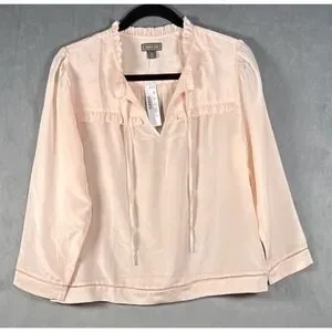 Point Sur J Crew Blouse Women's Pink Silk Peasant Ruffle Long Sleeve Sz S NWT