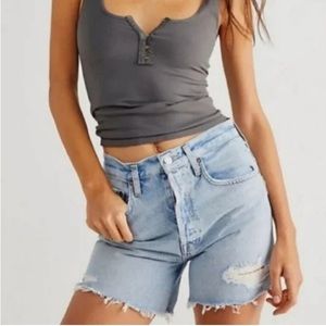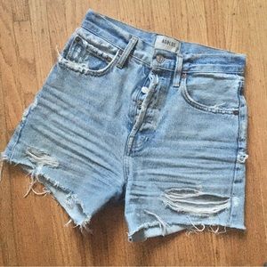 flawless condition with lot of factory distress hole on the side is intentional design! some pairs have label crossed over as store return 23 25” waist 11” rise 4” inseam 26 just handwashed but will relax more with wear 27” waist 12” rise 4.5” inseam 100% cotton I’d handwash or put in the washbag for machine wash to preserve the distress as much as I can :) sold out at aritzia