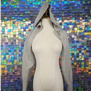 Super Cropped Hooded Shrug Bolero Sweater Sleeves Heather Gray S/M