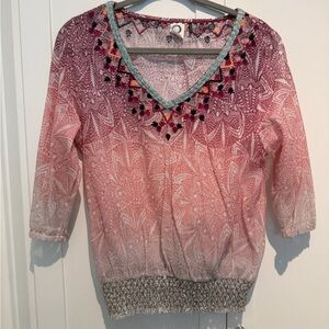 Anthropologie Akemi + Kin Arembepe Embroidered Ombre Top size small