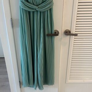 Keywords: Seafoam, mint, teal, patina, TLOAS, The Life of a Showgirl, Eras tour, Taylor swift, spring, summer, Easter, green, blue, pastel teal, pastel, pistachio, aqua, light green, flowy, Grecian, goddess, Statue of Liberty, showgirl, aqua, semiformal, semi formal