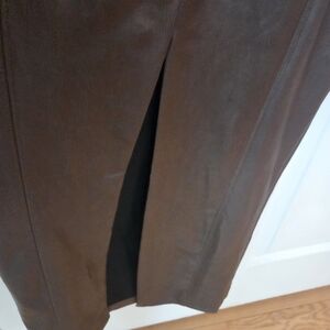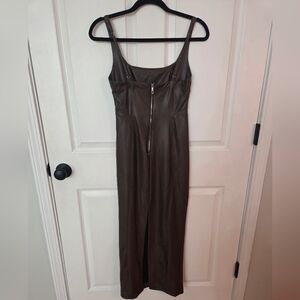 Bershka cut out front strappy faux leather midaxi dress in chocolate