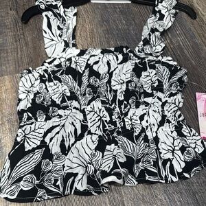 Elevate your style with the black and white floral top. Perfect for any occasion, this top combines comfort with a chic design.
