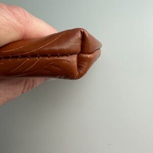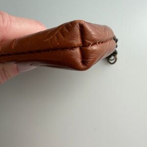 This Patricia Nash Leather Borse Coin Purse in Florence Tan is in excellent condition. Exterior leather and interior faux suede lining are pristine. This 100% full-grain leather vintage-inspired frame coin purse is perfect for storing a lipstick, cash and cards into the two slip pockets.