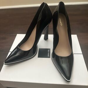 Chic black heels with a glossy finish. Stylish pointed toe. Ideal for formal events.