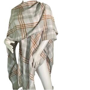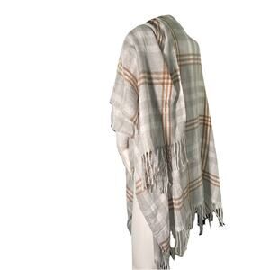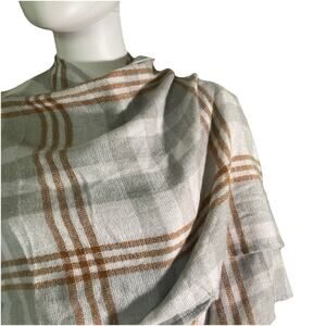 The Three Dots Women's Fringe Detail Cashmere Blend Wrap Louisa Plaid Gray is a stylish and versatile sweater perfect for casual occasions. Made from a luxurious blend of materials including cashmere, this wrap features a trendy plaid pattern and fringe accents. With a V-neckline, half sleeves, and a loose fit, this wrap is both comfortable and fashionable. The easy-care and lightweight design make it a practical and breathable choice for all seasons. Perfect for those looking for a modern and cozy addition to their wardrobe.