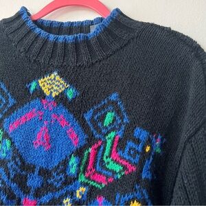 Vintage Liz Claiborne Colorful Geometric Print Chunky Knit Sweater