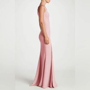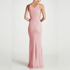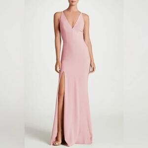 NWOT DRESS THE POPULATION $198 Sandra Blush High Slit V Neck Gown Size S