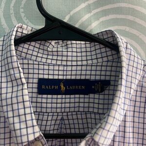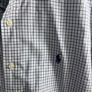 Classic Ralph Lauren Polo long-sleeve button-down shirt in a timeless blue and white check pattern.