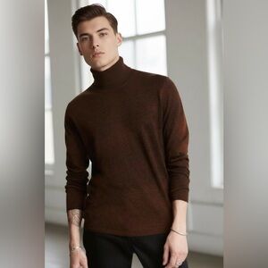 Earth-toned , Understated luxury, Urban clarity, Studio neutral, Contemporary, designer turtleneck, luxury knit sweater, brown turtleneck, men's designer sweater, fall winter sweater, minimalist menswear, reverse print sweater, elevated basics, modern classic sweater, smart casual men, high-end knitwear