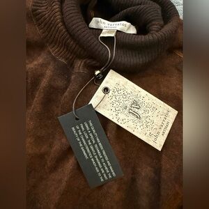NWT JOHN VARVATOS Artisan Turtleneck Sweater – Reverse Print Brown Sz L