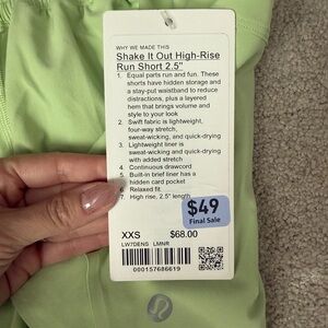 NWT Lululemon Shake It Out Shorts in Lemongrass sz XXS (2)