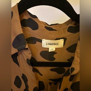 L'AGENCE Tan and Black silk patterned Blouse