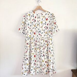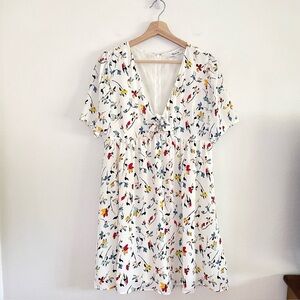 Madewell Tie Front Mini Dress in Drifting Flowers Tossed Floral Antique Cream, Women’s Size 12