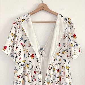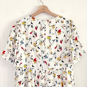 Madewell Tie Front Mini Dress Drifting Flowers Tossed Floral Antique Cream 12