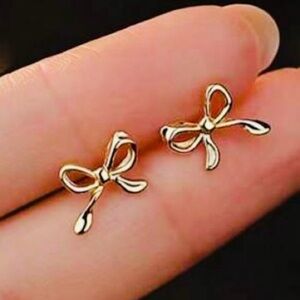 Dainty Gold Bow Stud Earrings NWT