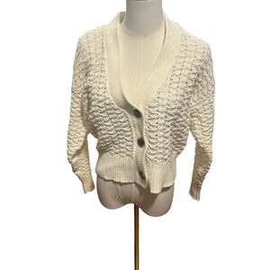New Loft Ivory Textured Cotton Knit Cardigan Small