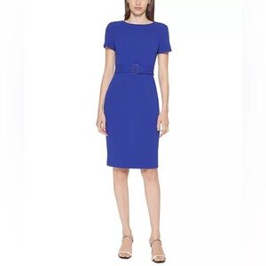 Calvin Klein Short-Sleeve Belted Sheath Dress