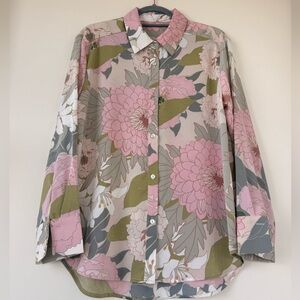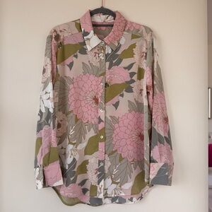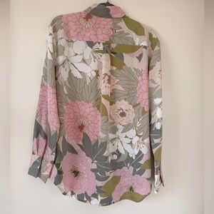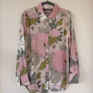 Chic floral button-up blouse with pink and green tones. Perfect for casual outings.Pit to Pit 22in, length is 26in Size is L, never used.
