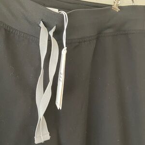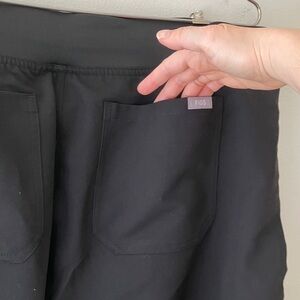 NWT FIGS Technical Collection Scrub Livingston Scrub Pant in Black. Drawstring in grey color with open top back pockets, boot cut style fit, In excellent pre-owned condition, never worn.