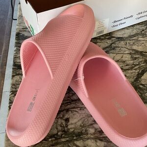 Comfortable pink mules by 32 Degrees. Easy slip-on design. Ideal for casual wear.
