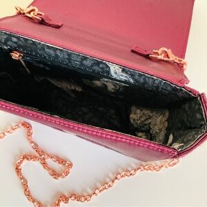 Chic plum clutch with a bow detail. Features a stylish chain strap.