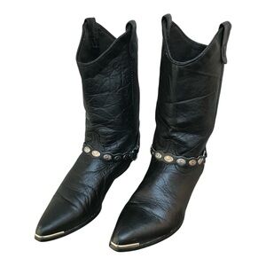 Vintage Black Leather #3734 Womens Western Cowboy Boots with ankle charm. SZ.8M