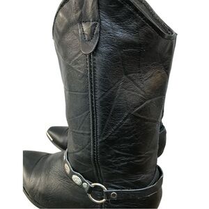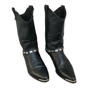 Vintage Black Leather #3734 Womens Western Cowboy Boots with ankle chain charm. SZ.8M. Ankle silver chain charm decor is Removeable. Great condition.