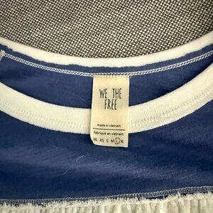 Chic indigo and ivory tee by We The Free. Ideal for everyday style. Flutter colorful sleeves.