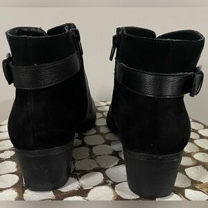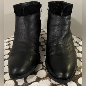 Classic Naturalizer Wanya ankle boots in black leather with suede accents. Easy side zip closure and cushioned comfort footbed great for everyday wear. Size 12 Medium