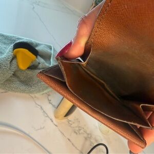 Louis Vuitton Monogram Porte Monnaie Gousset coin purse! Preloved and looking great - monogram bright, sides in great shape 😍. Inside has coin residue (normal for age), button has some tarnish . Check pics for details. Perfect for coins, cash, or tiny treasures 👜.