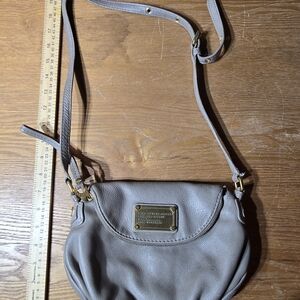 Stylish and versatile gray leather crossbody bag by Marc Jacobs. Perfect for everyday use with a sleek design.