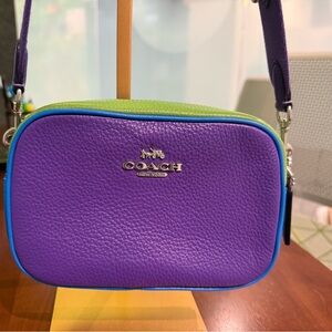 Stylish Coach crossbody in bold purple with blue accents. Perfect for daily use.