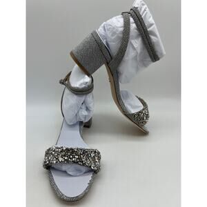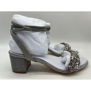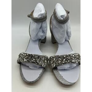 Badgley Mischka Women's Jada Ankle Wrap Block Heel Silver MP5316 Size 7.5 NIB
