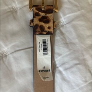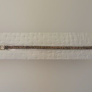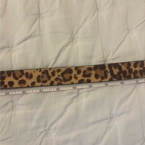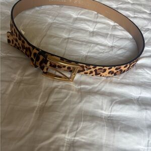 Stylish leopard print belt featuring a gold buckle. Perfect for adding a bold touch to any outfit. Measurements in photos.