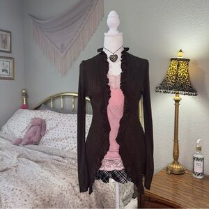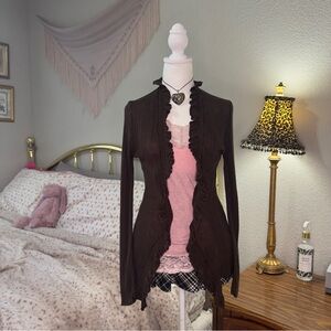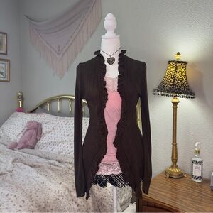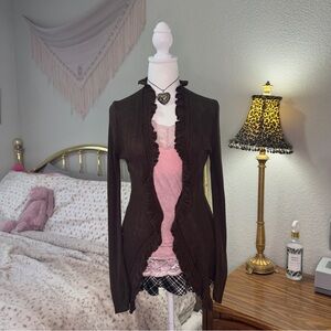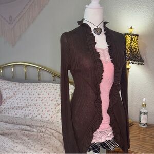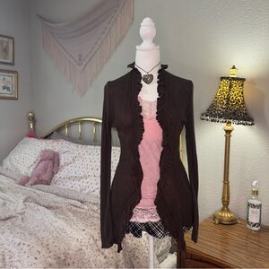 Y2K Brown Ruffled Cardigan