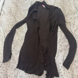 Chic chocolate brown cardigan with ruffled details. Ideal for layering. Tagged XL fits like medium