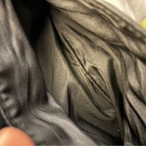 Elegant black quilted crossbody/shoulder bag with a sleek design. Features a stylish chain strap for added sophistication. This adorable bag features a fold over magnetic snap closure. There are 2 compartments, 1 of which is a zip pouch in the back with 2 interior pockets. The other is a large pouch. Width is 7.5” height is 6” depth is 3/4” and strap drop is 24” A very cute and stylish bag which can hold the essentials. Gently preloved and in excellent condition.