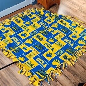 No Sew, handcrafted, Cozy UCLA Bruins fleece blanket with vibrant blue and yellow design. Perfect for fans. Due to weight has to ship alone, see measurements above. Just a cozy throw blanket. GT