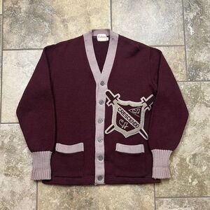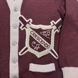Vintage 40s Cardigan Sweater Varsity 42 Adult S/M Crescendo Music School Wine