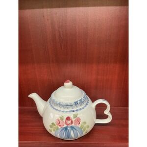 Tea For One Set Floral Rose Blue Ribbon Ceramic Stackable Teapot Cup Heart Hdle