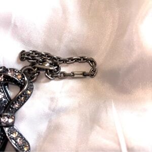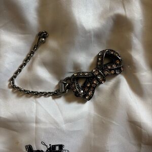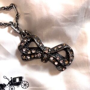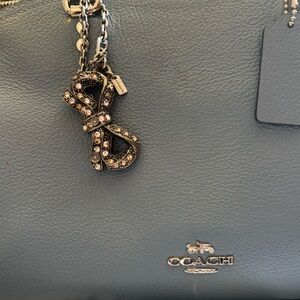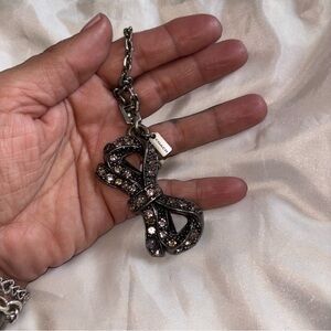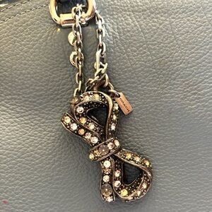 A collection by Selena Gomez for Coach. This feminine bow bag charm is detailed with shimmering crystals and Tea Rose rivets. With puzzle chain. Gorgeous accent to any purse.