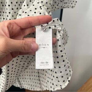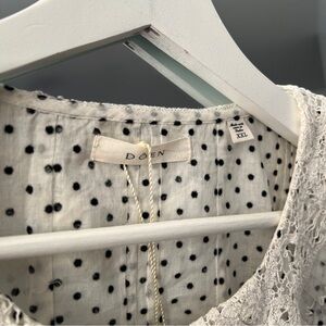 Doen Oleta Top Sea Salt Polka Dot Puff Sleeve Lace Collar Blouse Size XXL NWT