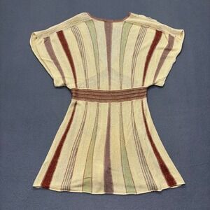 Y2K Sisters Women's Tunic Top Metallic Knit Striped V Neck Boho Empire Waist M