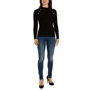 BCX Juniors XS Long Sleeve Ribbed Mock Neck Button Detail Sweater NWT