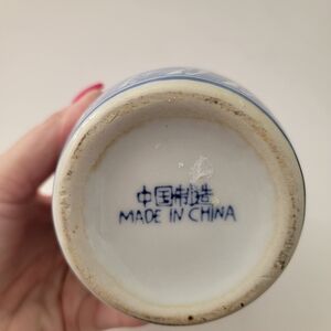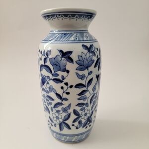 Blue & White Porcelain Chinoisery Bird Floral Pattern Vase Vessel